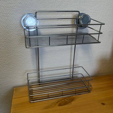 Metallinen suihkuhylly kahdella tasolla, imukuppikiinnitys