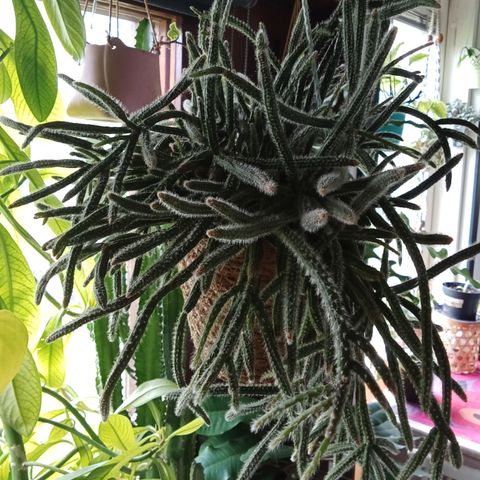 Korallikaktus (Rhipsalis) kasvi roikkuvassa ruukussa