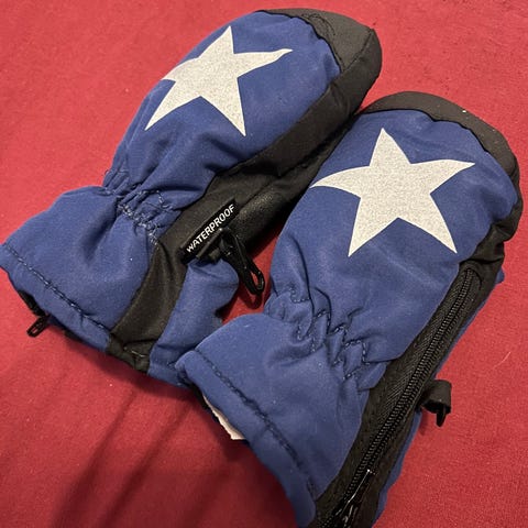 Yhdellä lapsella käytössä olleet tosi lämpöiset toppahanskat, sisällä virravuori.