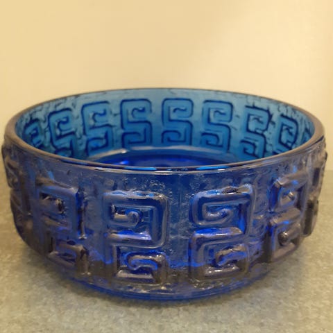 Riihimäen lasi, ruskea Taalari kulho. korkeus 7,5 cm, halkaisija 20 cm, paino 1,5 kg. Suunnittelija Tamara Aladin, tuotannossa 1968-1975.