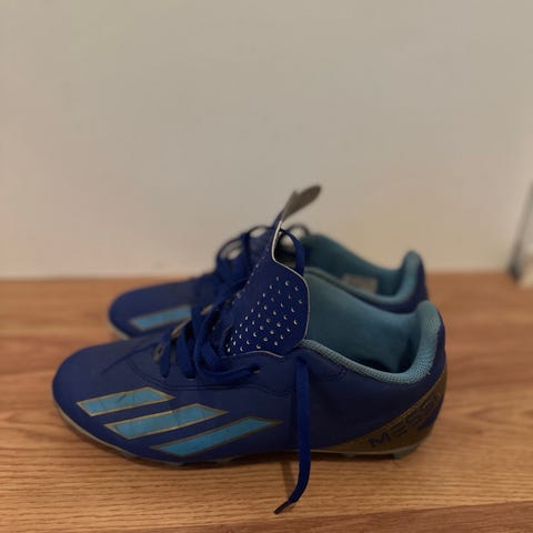 Adidas Messi lasten jalkapallokengät sinisenä, koko 38. Kenkien pohjassa on nappulat, jotka soveltuvat nurmipelaamiseen. Materiaalina keinonahka ja kangas. Hyvässä kunnossa, vähän käytössä.