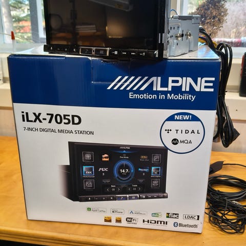Alpine autostereo bluetoothilla ja handsfreellä, sis.piuhat