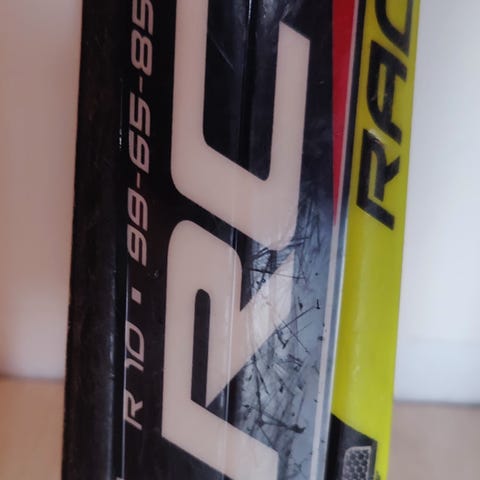 Suksilla ei ole voitelun jälkeen laskettu kertaakaan, kantit myös hyvät. Pohjissa naarmuja, kts kuva. Toisesta suksesta puuttuu peräpään suojamuovi ja toisesta kärjen suojamuovi lohjennut. Kumpikaan ei vaikuta laskemiseen.