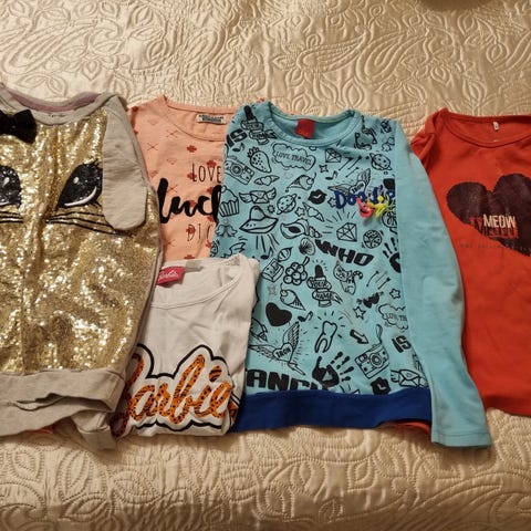 Vaatepaketti sisältää koon 122/128 vaatteita