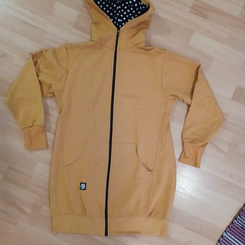 Haalari on teetetty pehmeästä ruskeasta karvakankaasta ja sen huppuosaa koristaa hauskat pystyssä olevat korvat.