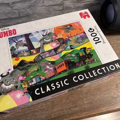 Dumbo palapeli, joka sisältää värikkäitä paloja ja on suunniteltu lapsille. Sopii ikäryhmälle 3+ vuotta. 24 palaa. Tosi hyvä kunto, pakkauksessa tarrasta pieni repeämä.