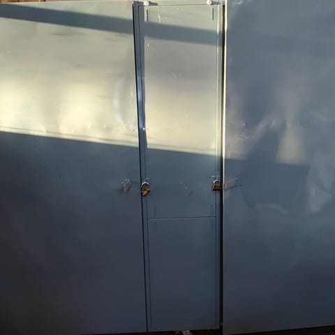 Tukeva peltikaappi 100€/kpl k.~200cm L. 104cm S.50cm.