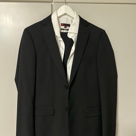 Dressmann musta miesten puku, koko 46. Puku sisältää takin ja housut. Takissa ja housuissa slim fit -leikkaus. Pukua käytetty muutaman kerran nuoren rippijuhlissa. Puvun käyttäjä on ollut tällöin n.170-175 cm pitkä ja hoikahko. Pukua ei ole pesty, mutta näkyvää likaa ei ole.