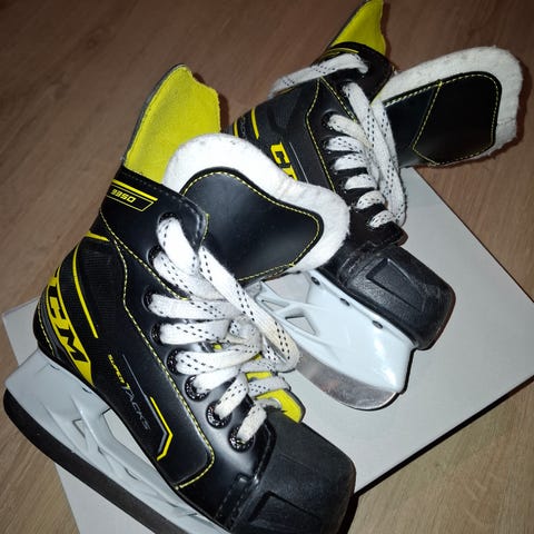 CCM Jääkiekko lasten luistimet, koko 32. Luistimissa on pehmeä sisävuori ja irrotettava pohjallinen, jotka tarjoavat mukavuutta ja tukea lasten jääkiekkoharjoitteluun ja -peleihin.