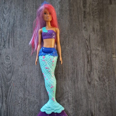 Tytär myy barbejaan. Uutena ostettu, hyväkuntoinen merenneito-barbi: Ariel. Tyttären kertoman mukaan hameesta saattaa olla irtoamassa naru/ osa narusta, ei vielä ainakaan vaikuta leikkiin, huomioitu hinnassa.