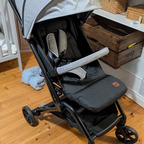 Mukaan pussi johon rattaat saa tarvittaessa pakattua.