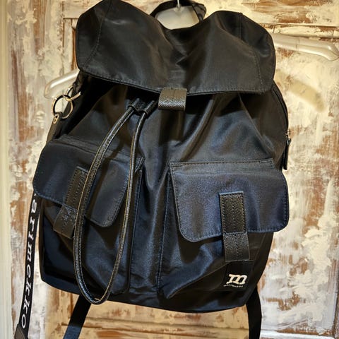 Marimekko Everything Backpack L Solid musta reppu. Reppu on valmistettu kierrätetystä polyamidista. Repussa on kiristysnyörillä suljettava suuaukko, magneettinapilla kiinnittyvä kansiläppä sekä kaksi etutaskua magneettinapeilla. Säädettävissä olkahihnoissa on pehmusteet ja jacquard-kudotut, Unikko-kuosiset kiinnikkeet. Toisella sivulla on yksi pitkä vetoketjutasku ja toisella Marimekko-avaimenperä. Repun sisällä on kannettavalle tietokoneelle sopiva iso tasku. Selkäpaneeli on pehmustettu. Repussa on nahkaisia yksityiskohtia. Laukun leveys 28 cm, korkeus 36 cm, syvyys 18 cm. Päälliosa ja vuori 100 % polyamidia. Laukku uusi, käyttämätön, laput kiinni.