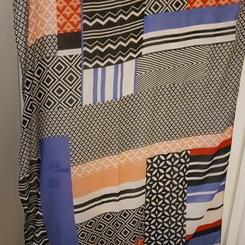 About 185 cm in length, used only a little. Golden metal details on the black part, otherwise zebra print. On the other side the lighter colour takes more space (pic 3). I can deliver in Turku-Lieto-area. :)
