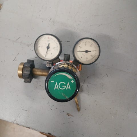 Hyväkuntoinen kaasupullon paineensäädin.
