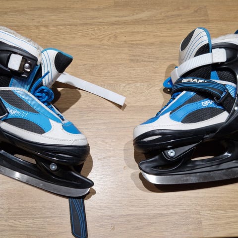Craft lasten luistimet, koko 35-38. Luistimet on säädettävät eli kokoa voi muuttaa neljällä portaalla. Kiristys remmeillä ja klipseillä. Tykättiin kovasti eikä mitään moitittavaa.