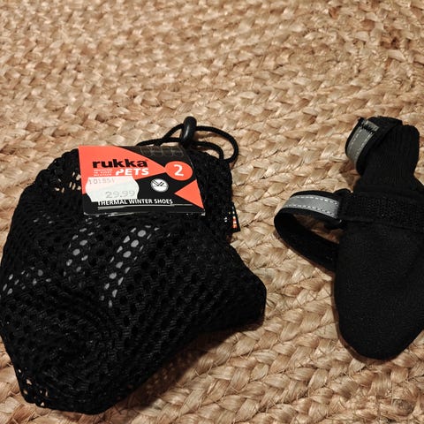 Rukka koiran tossut, koko 2, väri musta. Sopivat tosi pienelle koiralle. Kts. Rukan taulukko.