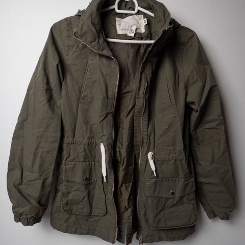 Kevyt parkatakki. Hyvässä kunnossa, käytetty lähinnä kauppareissuilla. Irrotettava huppu.