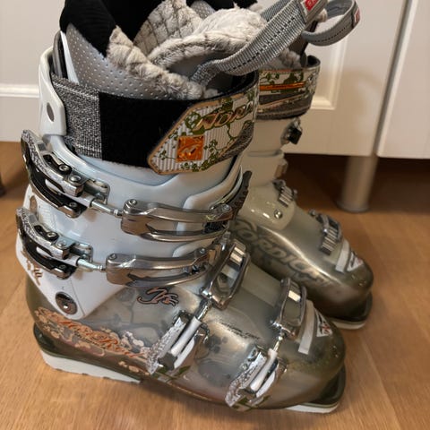Käytetyt, mutta hyväkuntoiset Nordican laskettelumonot. Koko 25.5 ja 295 mm. Olleet käytössä 39 koon kapeassa jalassa, johon hiukka leveät.