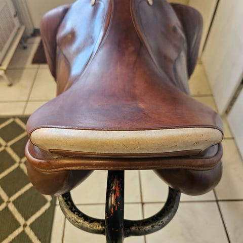 Sydney estesatula, musta. Hyvässä kunnossa, polvitukien kohdalla nahka jo elänyttä/ryppyistä, mutta ei haittaa käyttöön ja on vain esteettinen "kauneusvirhe". Satula on muuten ehjä ja kaikinpuolin hyvässä kunnossa. Toppaukset tasaiset ja hyvässä kunnossa.