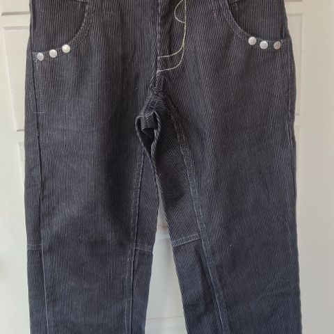 Hyväkuntoiset ja ehjät vähälle käytölle jääneet vakosamettihousut. Vyötärön tuumakoko 28, mutta kuminauhakiristys löytyy. Koko sopii noin 155-165 pituiselle. Ostettu Blue Tomato-liikkeestä.