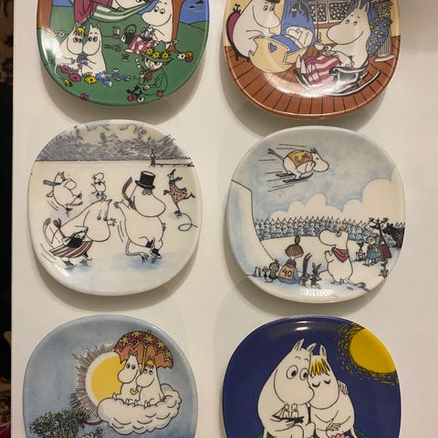 Hinta muumilautaselle 20euroa ja vuodenaika seinälautaset yhteensä 60eruoa