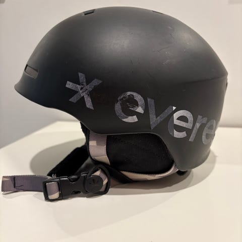 Everestin lasten laskettelukypärä koossa xs, eli 52/53. Kypärä on ollut käytössä vain pari laskukautta, joten kunto on hyvä. Kypärän sisällä on lämpöinen karvavuori ja pehmusteet, jotka ovat myös hyvässä kunnossa. Laskettelulaseille löytyy takaa pidike, mutta kypärässä ei ole kokosäädintä.