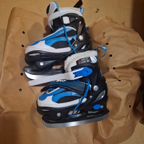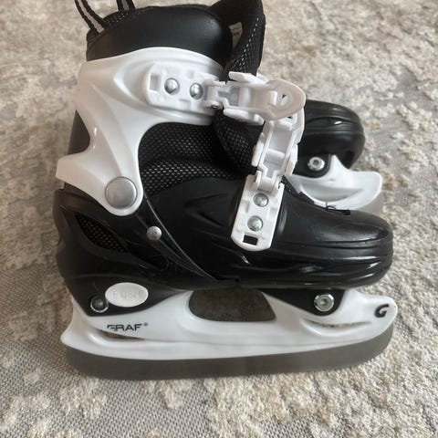 Craft lasten luistimet, koko 31-34. Luistimet on säädettävät eli kokoa voi muuttaa neljällä portaalla. Kiristys remmeillä ja klipseillä. Tykättiin kovasti eikä mitään moitittavaa.