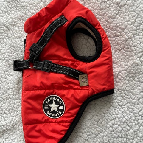Koiran toppaloimi heijastinkangasta, koko 35. Kunto hyvä.