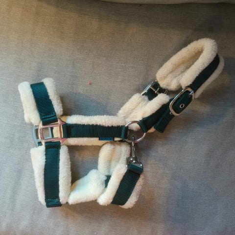 Yhden kerran kokeiltu riimu ja todettu liian pieneksi isopäiselle shetlanninponille. Siro päiselle shetlanninponille sopii. Säädettävä molemmilta puolilta.