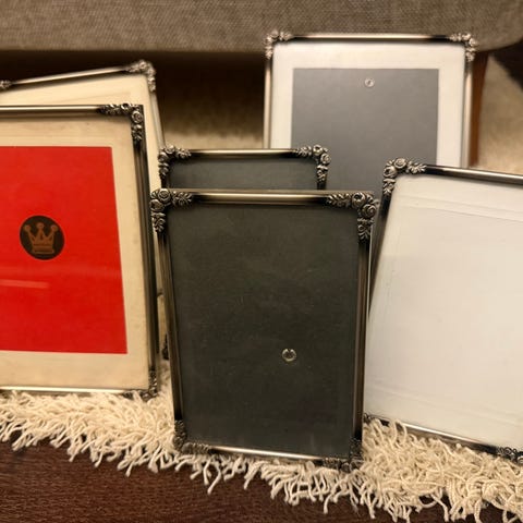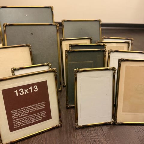 Myydään vanhoja metallisia valokuvakehyksiä. Kaikissa lasi. Erikokoisia. Yhteensä 9 kpl.
