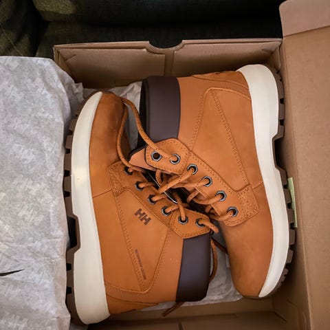 Helly Hansen miesten/poikien lämpimät talvikengät koko 38,7 (US 5.5). Päällinen ruskeaa, vedenkestävää nupukkinahkaa, thinsulate lämmöneristys, pitävä kumipohja.