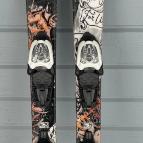 Hyvässä kunnossa olevat temppusukset. Täältä ostettu hyväkuntoisena. Nykyinen laskija ei ehtinyt montaa kertaa laskea, kun kasvupyrähdyksen vuoksi sukset jäivät pieniksi.