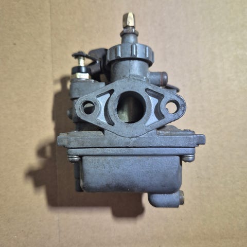 Kokonainen 12mm Mikuni. Laippa suora ja toinen kiinnitysreikä hieman isompi.