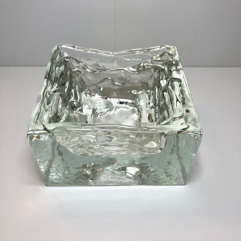 Björn Weckströmin suunnittelema Nuutajärvi Arktis tuhka-astia, kirkasta lasia.