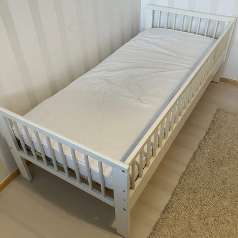 Myydään. Ikea Gulliver sänky patjalla (Ikea vyssa) ja turvalaidalla . Käytön jälkiä.