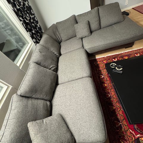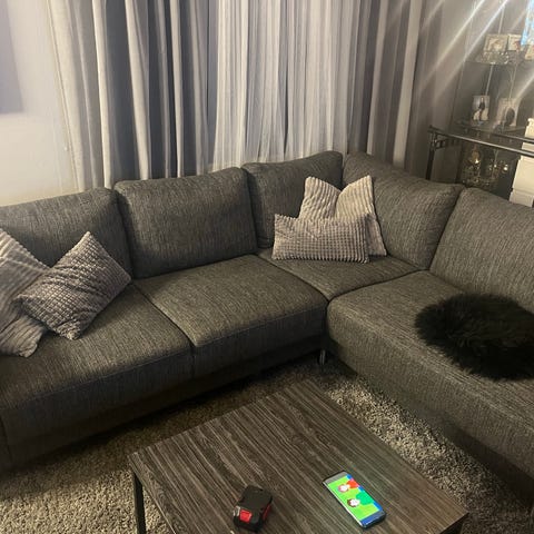 Myydään reippaan kokoinen ja laadukas Natuzzin kulmasohva pienemmän tieltä pois. Sohva ei ole uusi, joten nahassa paikoittain pientä kulumaa, sohvan pohjassa pienehkö reikä kankaassa, ei haittaa käyttöä. Koiratalous.