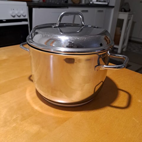 Vanha mutta hyväkuntoinen Hackmanin teräskattila. 1 litra. Ei käy induktioliedelle.