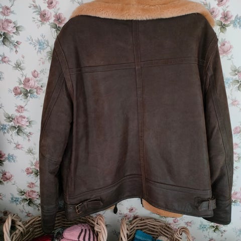 Myydään miesten ruskea nahkatakki karvavuorilla. Koko 48.