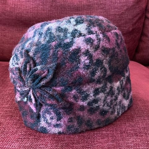 Vähän käytetty, siisti (ei meikkitahroja) EnHatsin round curvy huopahattu. Väri vaalea viininpunainen. Tästä upea käsintehty hattu pikkurahalla!
