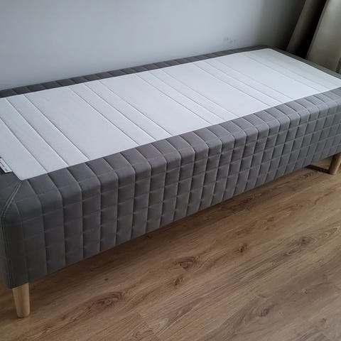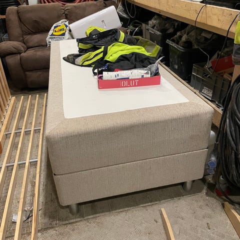 Muuton takia myynnissä käyttämättömäksi jäänyt runkopatja. Ollut käytössä jo muutamia vuosia, mutta runkopatja itse hyvässä kunnossa. Puiset jalat ensimmäisestä kuvasta mukaan.
