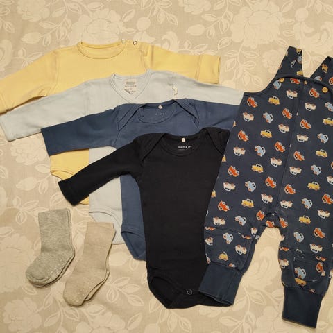 Hakusanat: vauvanvaatteet, vauva, haalarit, joustofrotee, body, froteinen, aitiyspakkaus, 62, 68, unisex, äp, lappuhaalari, lappuhaalarit