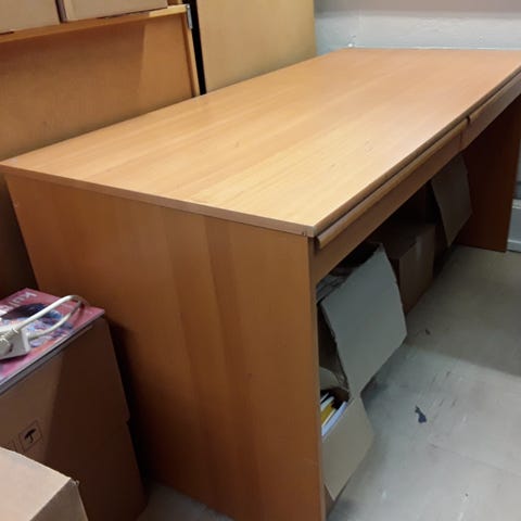 Annetaan pieni työpöytä. Pöydässä käytönjälkiä.