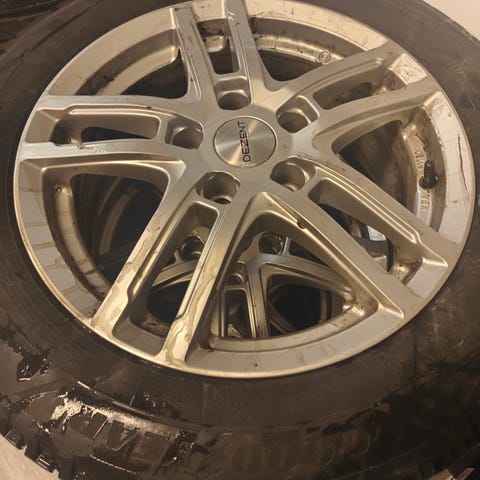 Nokian 205/55R17 renkaat joissa pintaa vielä ainakin yhdeksi kesäksi. Vanteet todella siistissä kunnossa.