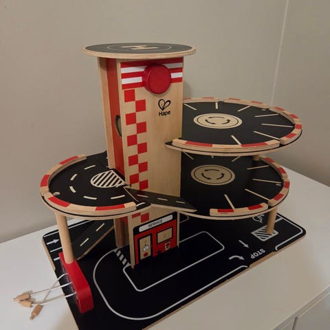 Myydään puinen Hape parkkitalo +autot. Kovasti leikitty, joten ajosiltoja liimattu uudelleen kiinni. Kissatalous. Nouto Ylöjärvi.
