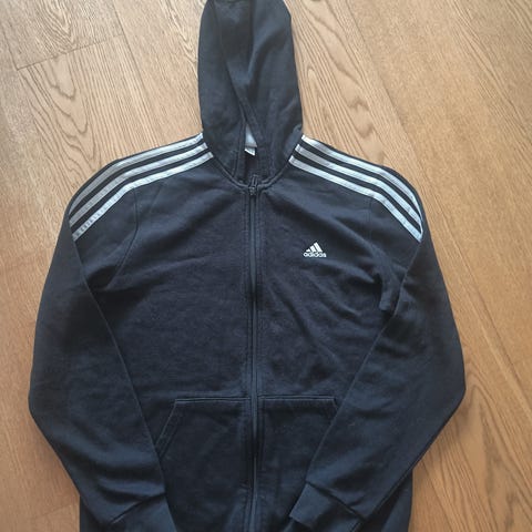 Musta Adidaksen huppari. Ollut käytössä yhdellä lapsella. Väri ehkä hieman haalistunut, muuten en löytänyt käytönjälkiä.