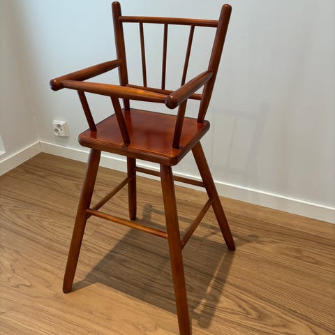 Ruskean värinen syöttötuoli joka menee myös kasaan juniori pöydäksi.Pyörät alla niin voi liikutella.Nouto Neulamäestä.