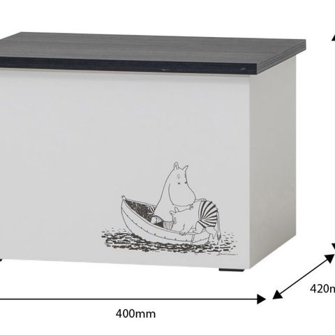 Myydään hyväkuntoinen Muumi-säilytyslaatikko. Laatikon mitat: n. 60 cm leveys, 40 cm korkeus ja 44 cm syvyys.
