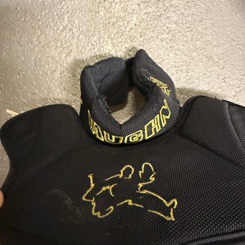 Reilun kauden käytössä ollut jr s/m kokoinen maalivahdin kaulasuoja.