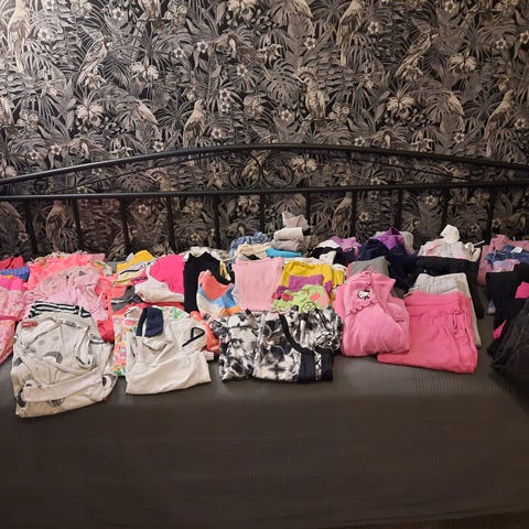 Paketti lasten vaatteita, joita kaikkia käytetty koossa 134.
