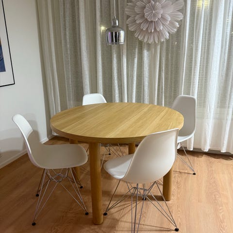 Table and chairs in a good condition, not used much. Setup not available anymore in Finland. Very similar setup like here: